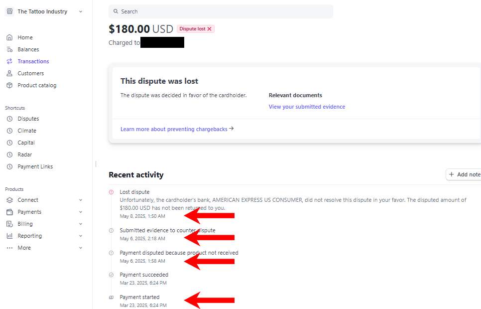 Filed a chargeback—meaning he received a refund by taking money from another artist who was depending on that payment to ship their magazines.